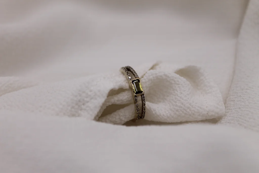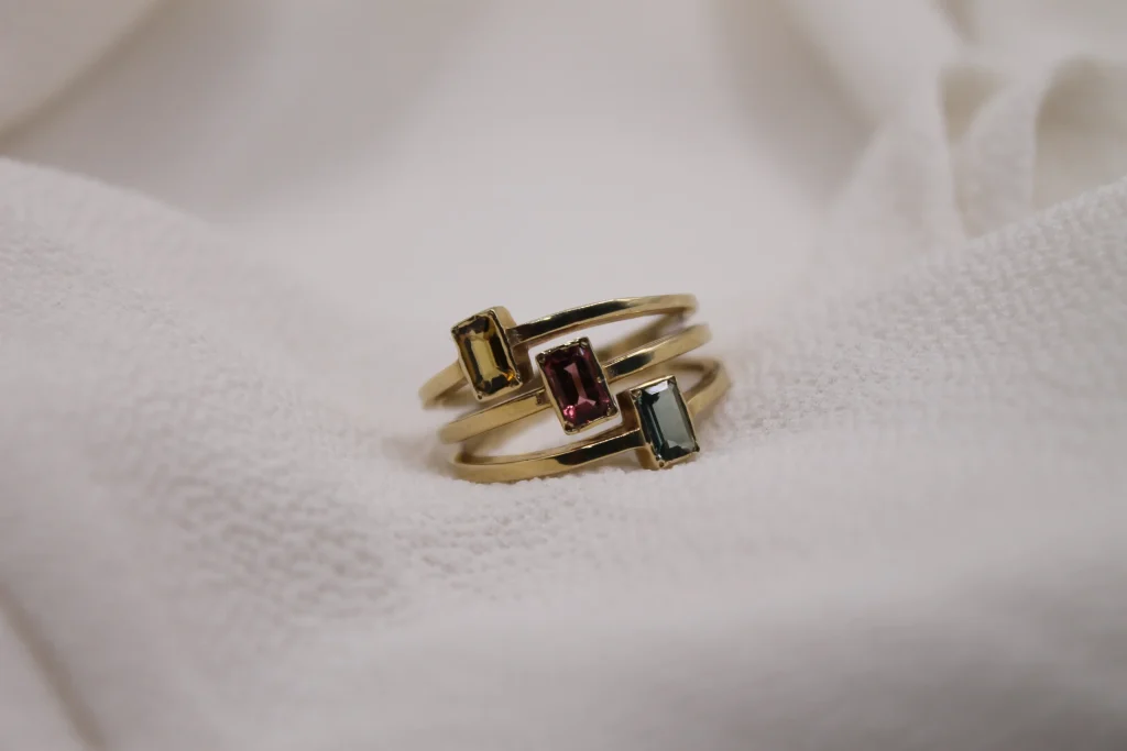 טבעת בשילוב אבני חן טורמלין טבעי בליטוש