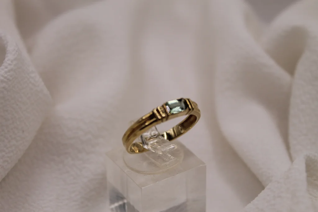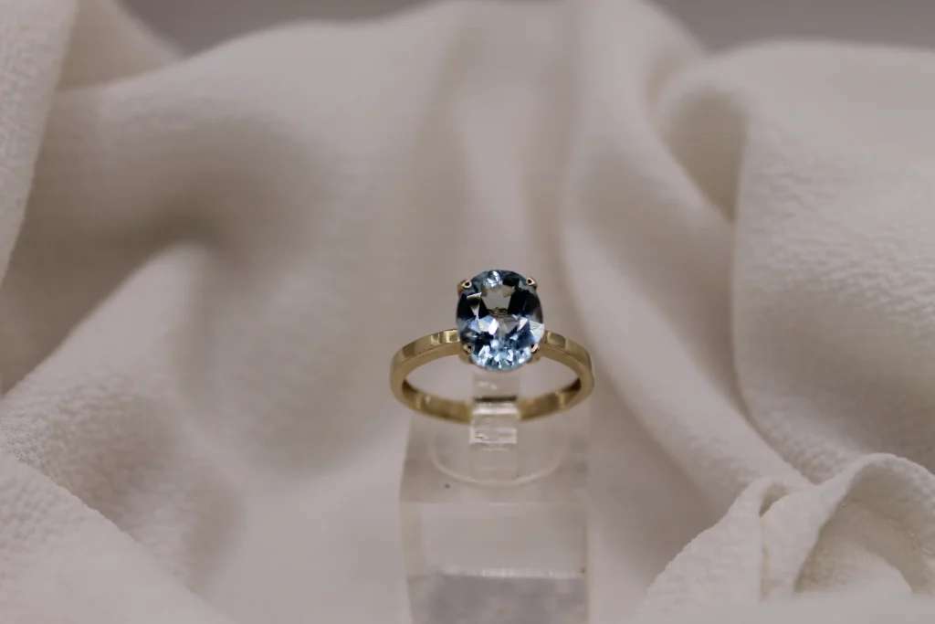 טבעת זהב צהוב בשילוב אבן אקווה מרין 2.3 ג׳