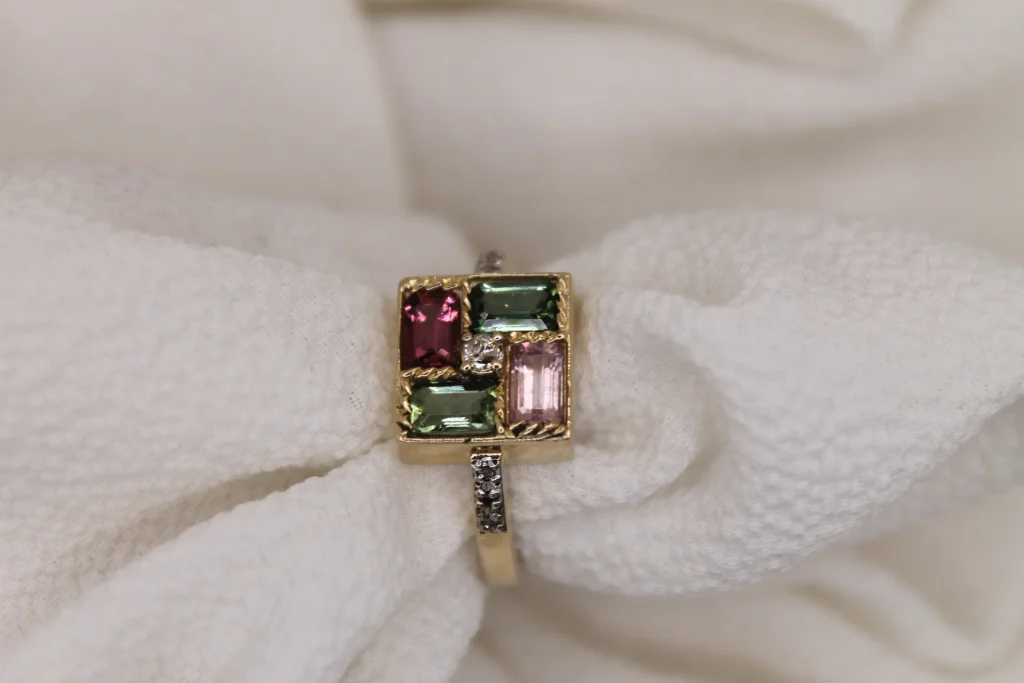 טבעת זהב 14k בשילוב אבני טורמלין 4.4 ג׳