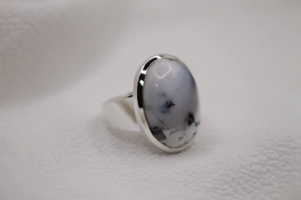 טבעת כסף 925 בשילוב אבן מוקאיט עגולה