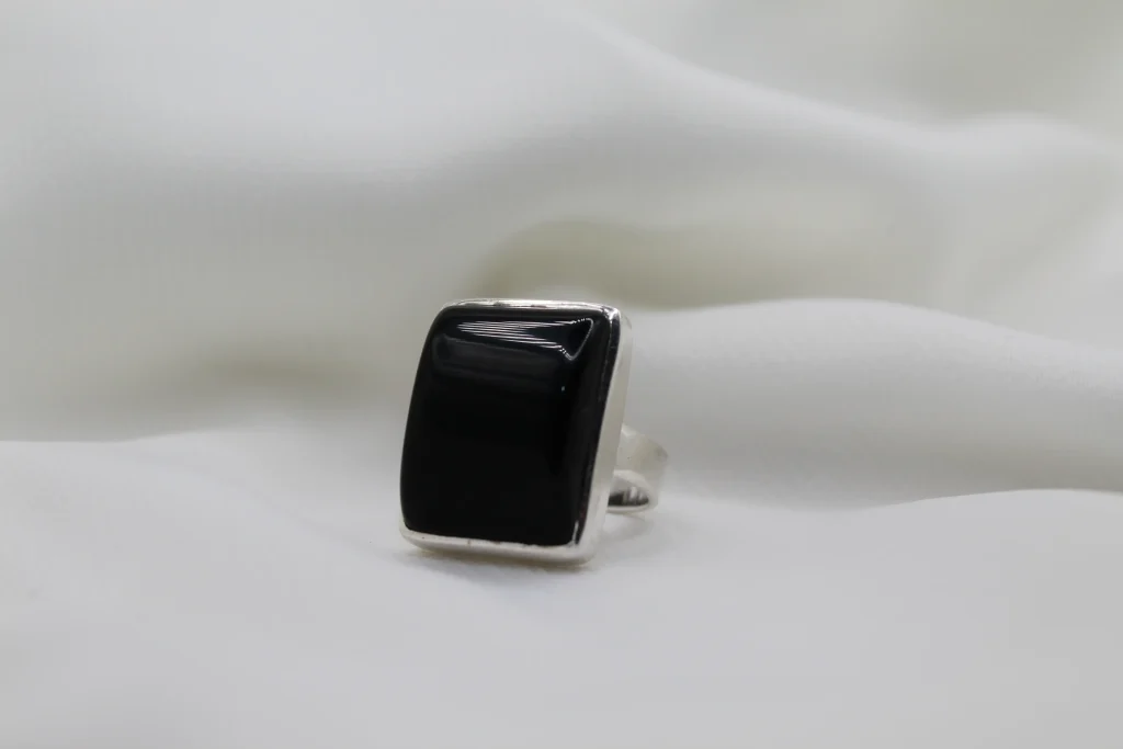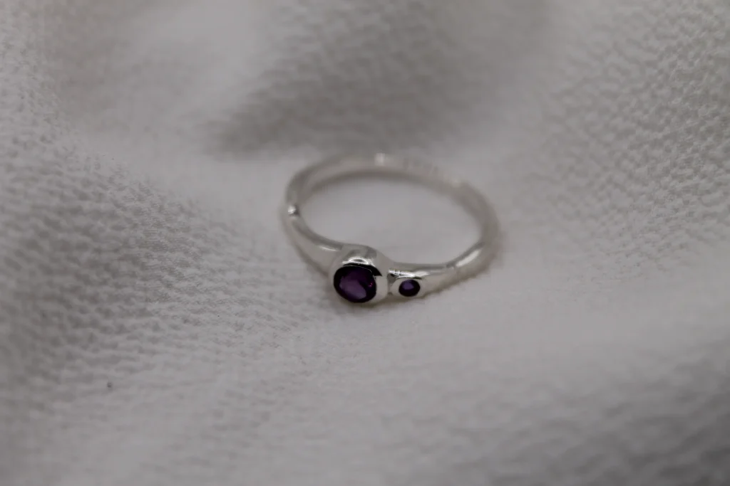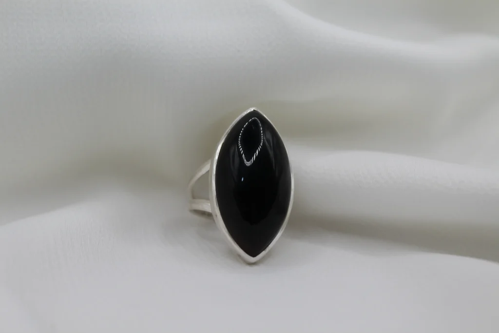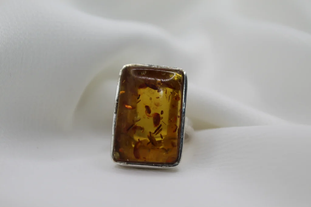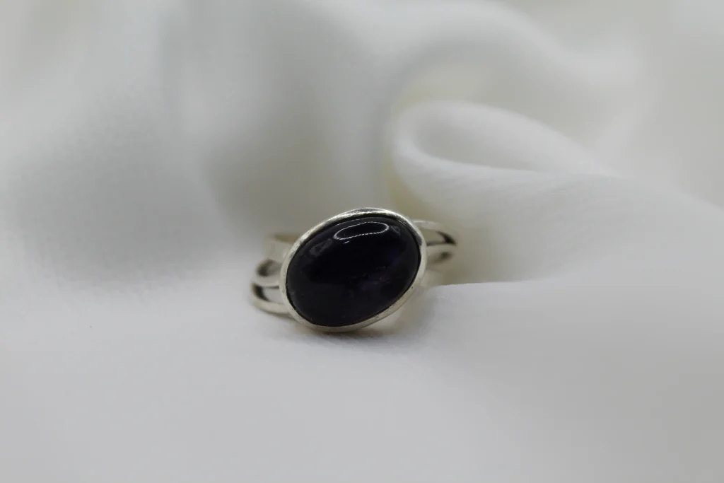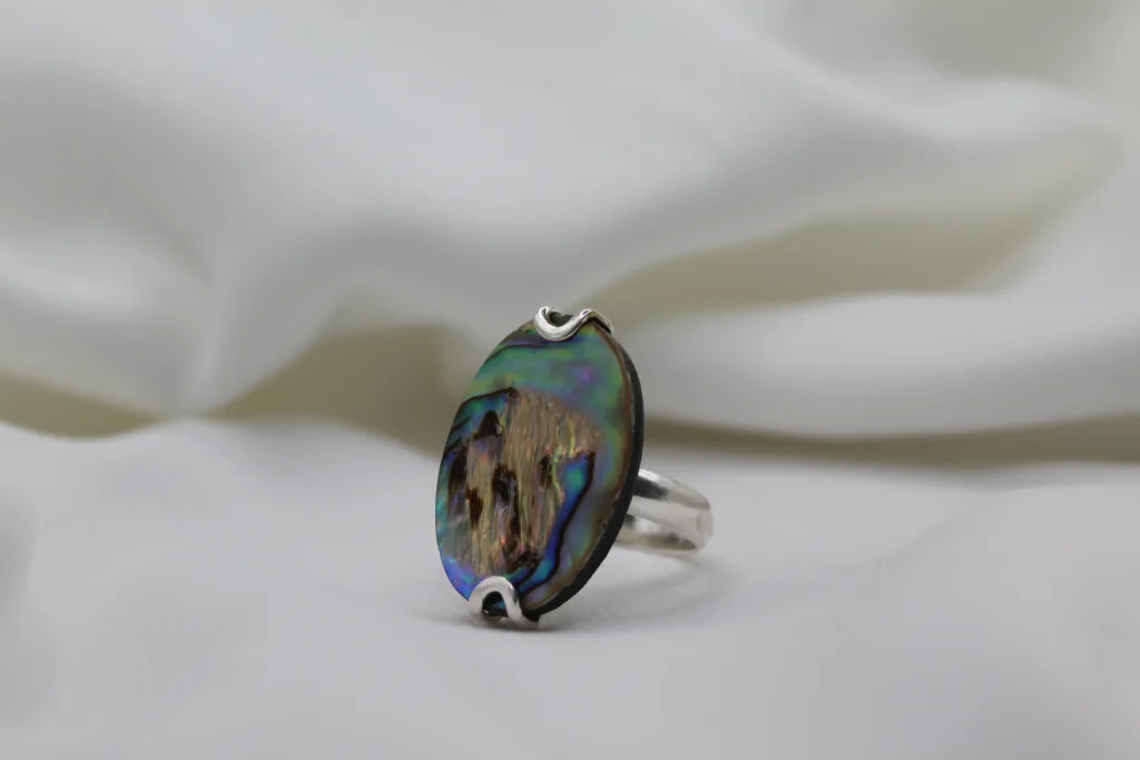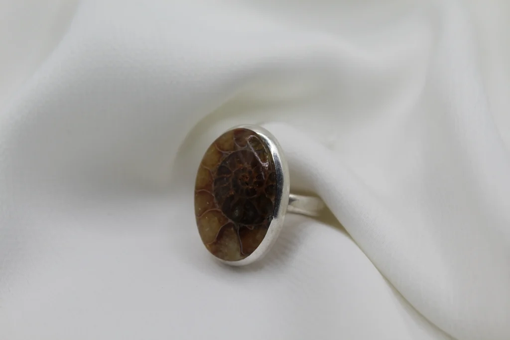 טבעת כסף בשילוב אבן אמוניט מאובן