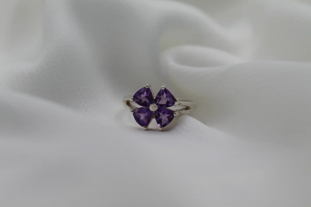 טבעת כסף בשילוב אבן חן אמטיסט טבעי