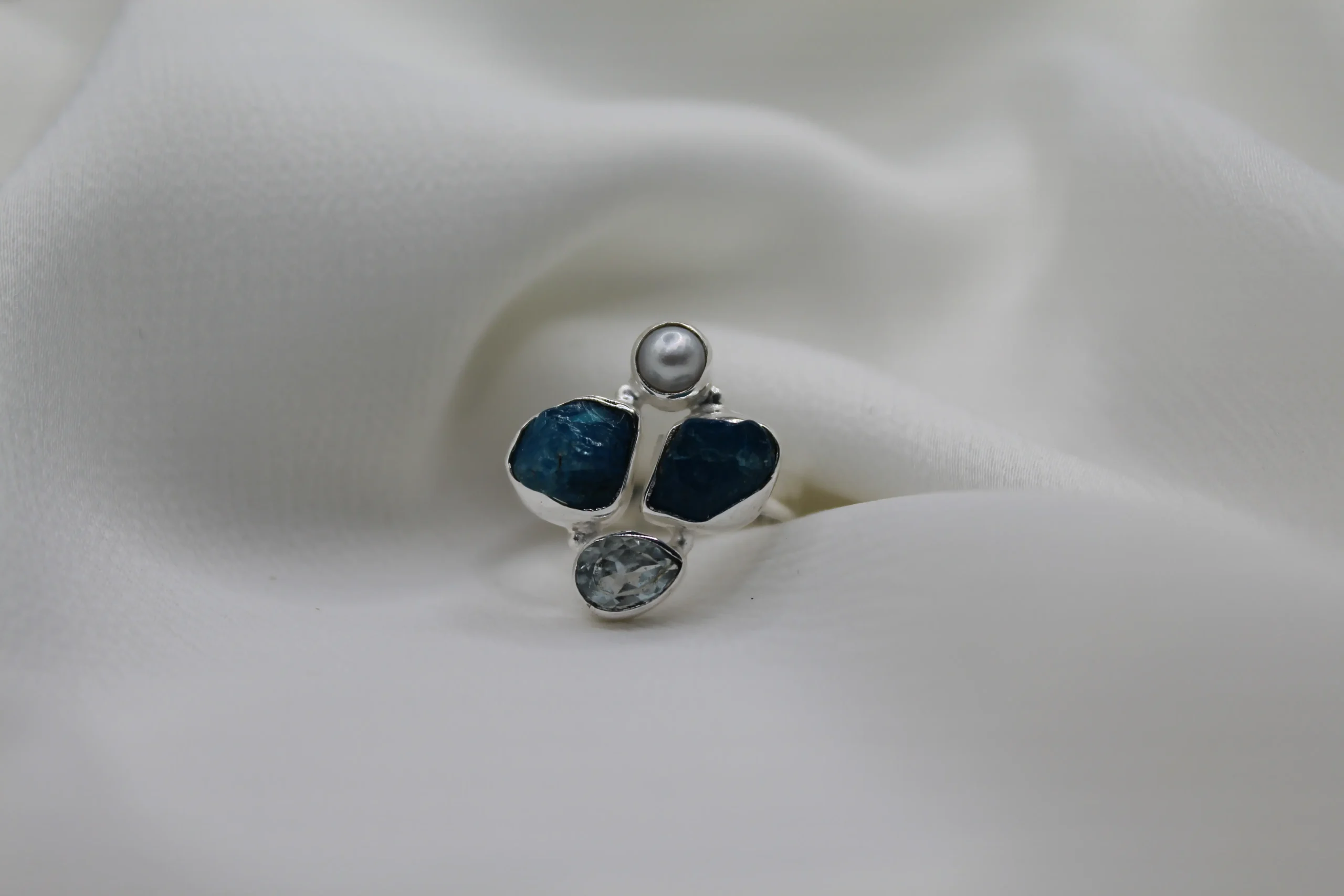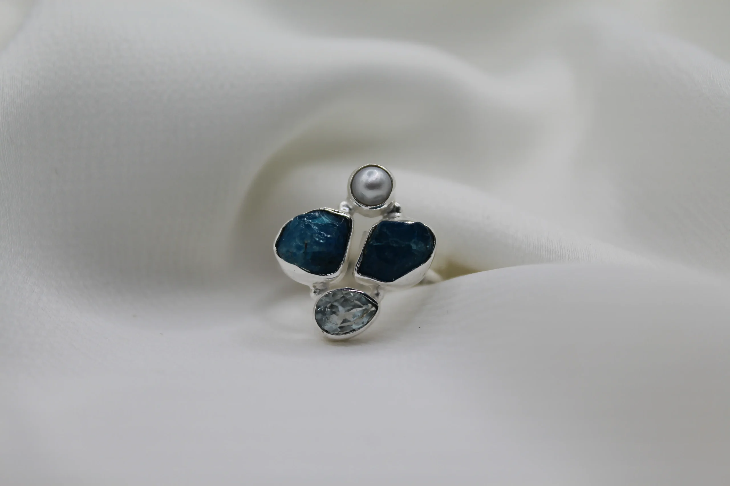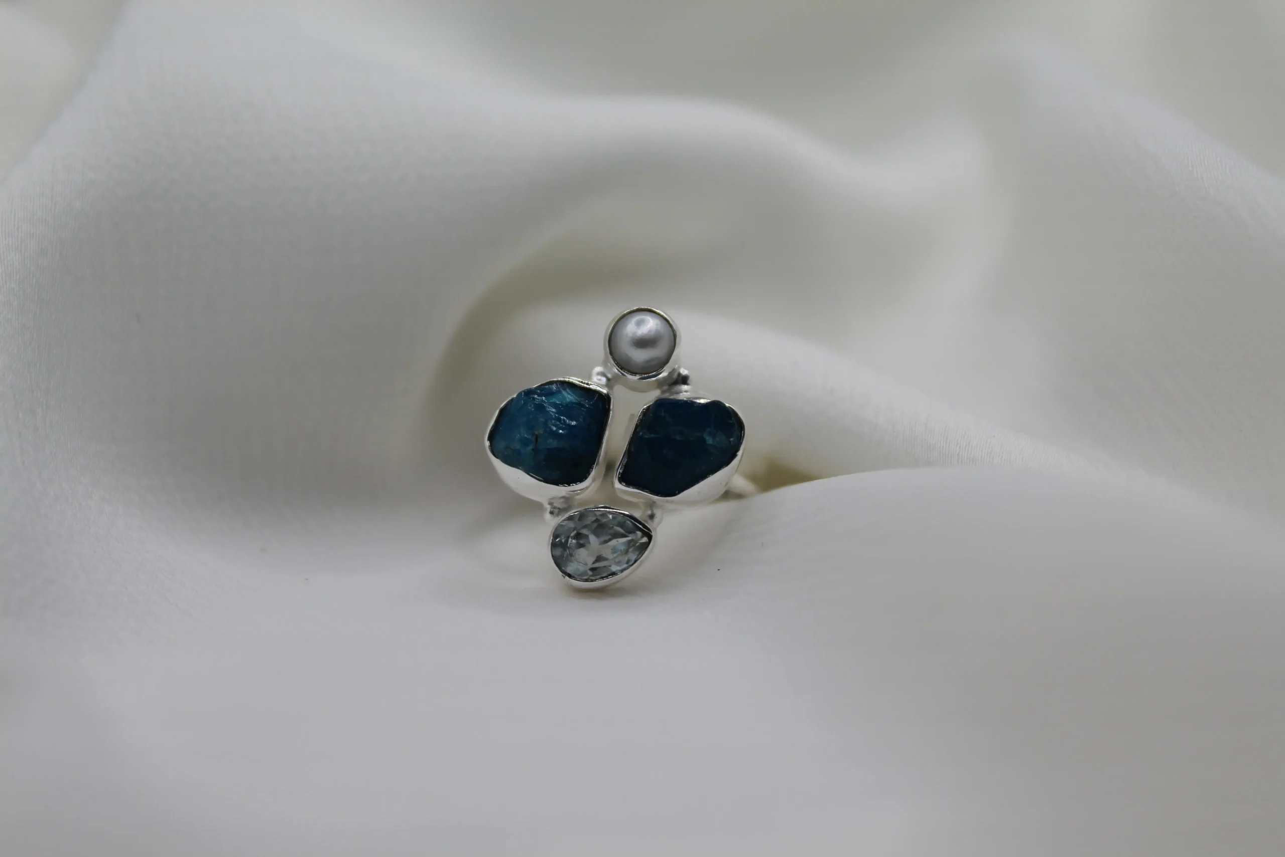 טבעת כסף מרהיבה בשילוב אבני חן אקווה מרין לא מלוטש, היא לא סתם טבעת – זו יצירת אומנות שנוגעת בלב! הכסף סטרלינג שזורים בעבודת יד, והאבן המיוחדת, האקווה מרין, עם הגוון הטורקיז העמוק שלה, מזכירה את ים התכלת של חופי הים התיכון. האבנים הלא מלוטשות שומרות על המראה הטבעי שלהן, מה שמוסיף לתכשיט מגע ייחודי ואותנטי. היא משדרת הרגשה של חופש ורוגע, ובשילוב עם הברק של הכסף, יוצרת משחק של צבעים שמושך תשומת לב מבלי להשתלט. את יכולה ללבוש אותה לבד או לשלב עם עוד טבעות – היא משתלבת מושלם עם כל סגנון, בין אם את יוצאת לאירוע מפואר ובין אם את סתם רוצה להוסיף נגיעה של אלגנטיות ליום שלך. החוויה של ללבוש את טבעת האקווה מרין הזו היא בלתי נשכחת; היא לא רק תכשיט, אלא סיפור שאת מספרת לכל מי שפוגש אותך!