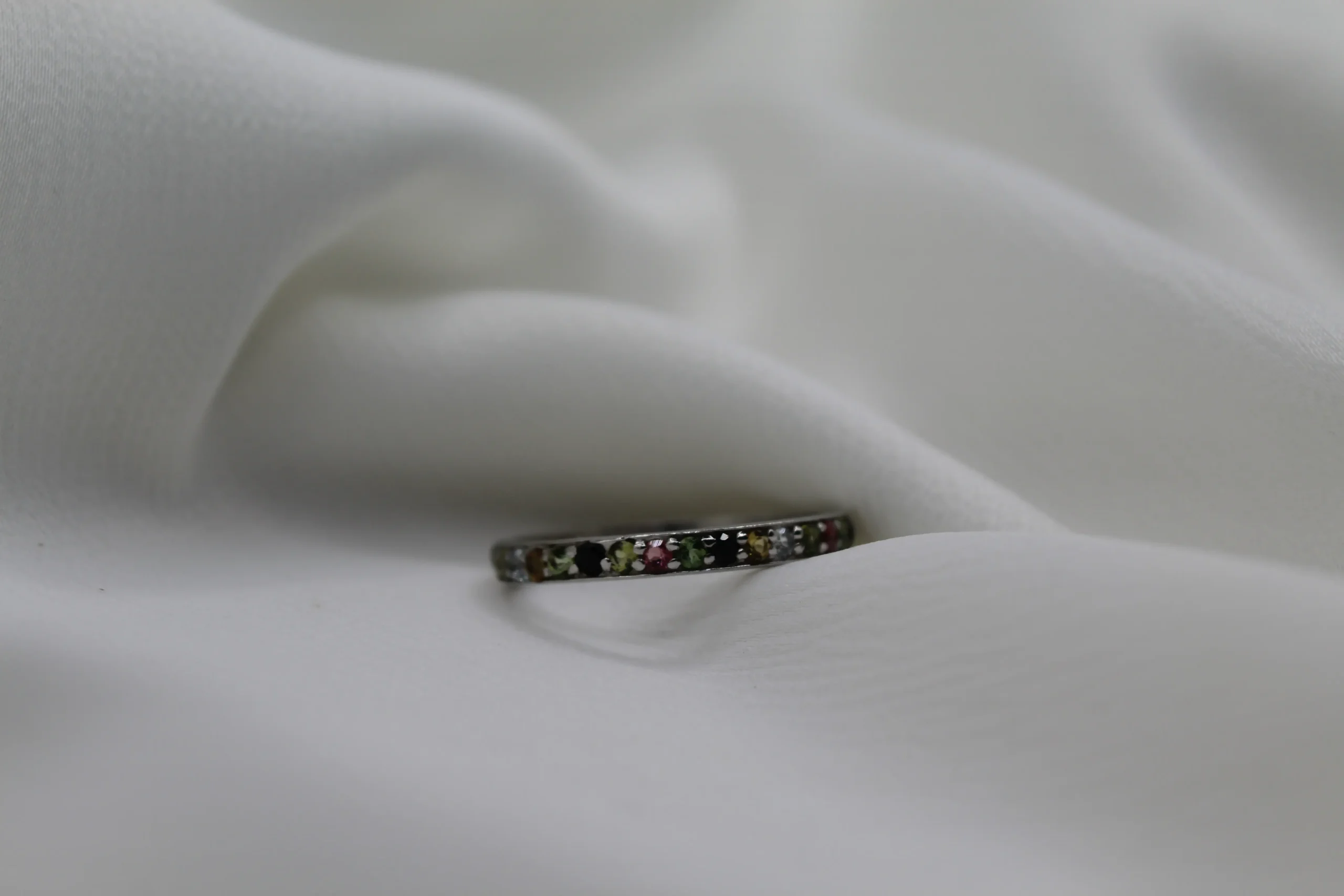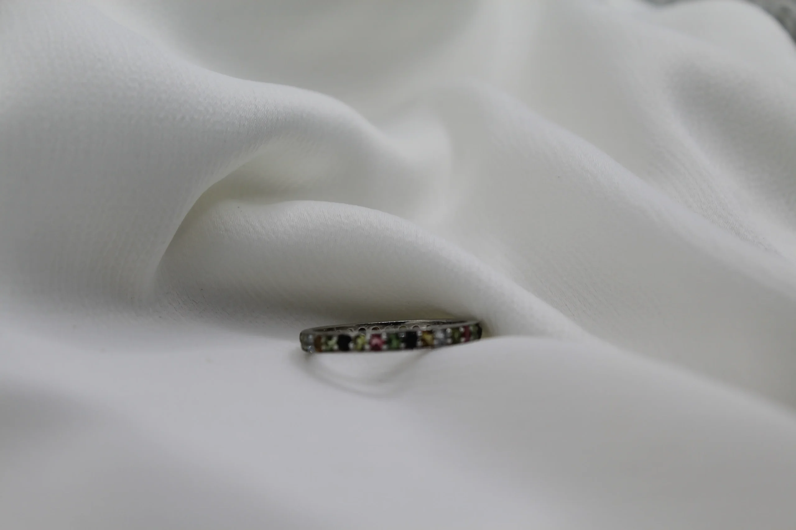טבעת כסף בשילוב אבני חן טורמלין משובצות