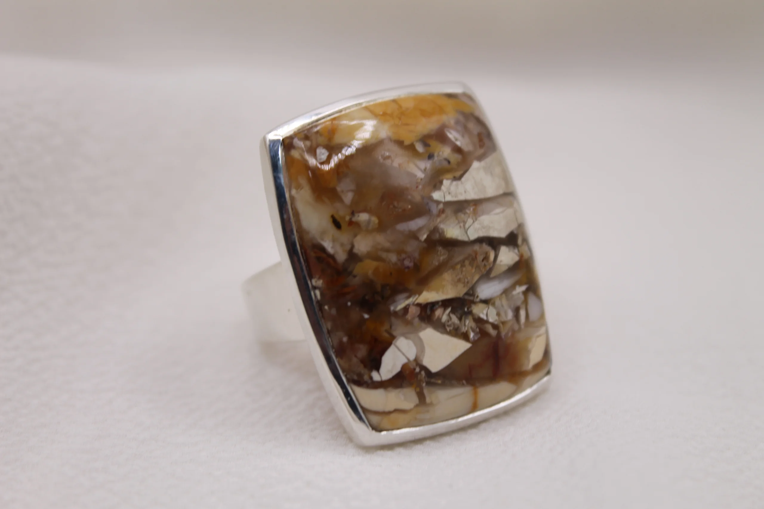 טבעת כסף 925 בשילוב אבן מוקאיט היא לא סתם תכשיט – היא אמירה של סגנון וביטוי אישי. המתכת המבריקה מתמזגת בצורה מושלמת עם האבן המיוחדת, שמביאה איתה את כל הטוב של הטבע: גוונים חמים של חום, זהב וורוד, שכל אחד מהם מציע רכות ונשיות קסומה. על פני האבן יש שרטוטים שמוסיפים לה עומק ופלא, וכשאת מזיזה את היד, היא פשוט מקפצת באור. הטבעת הזו מתאימה לכל אירוע, מהפגישה בעבודה ועד לערב עם חברות, והיא תעניין כל מבט. היא משדרת לא רק יופי, אלא גם חיבור לאנרגיות חיוביות של האבן מוקאיט, הידועה ביכולתה להביא להרגשה טובה ולהגביר את הביטחון העצמי. בקיצור, זו טבעת שלא תרצי להחמיץ – היא תוסיף לך נגיעה של אור ושיק בכל פעם שתראי אותה על האצבע!