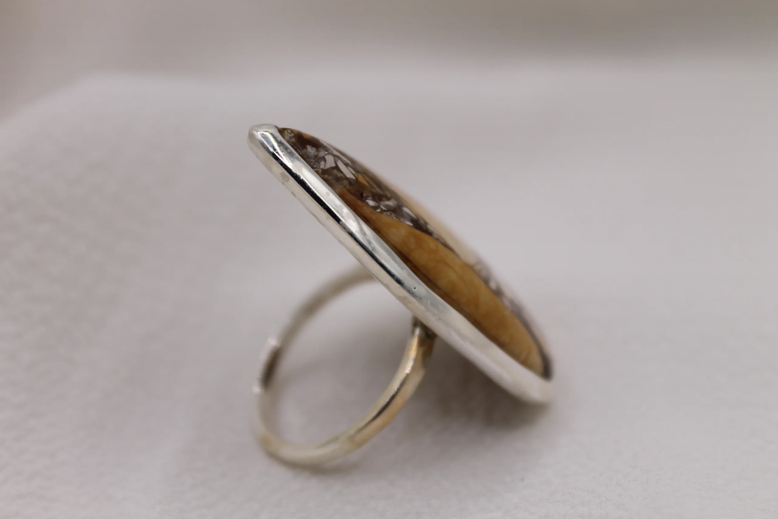 טבעת כסף 925 בשילוב אבן מוקאיט היא התכשיט שאי אפשר לעמוד בפניו! עם עיצוב מרהיב שמשלב כסף סטרלינג מבריק ואבן מוקאיט ייחודית בגוון חמים וברירי, הטבעת הזו מוסיפה נגיעה של אלגנטיות וסטייל לכל לבוש. האבן, שנבחרה בקפידה, מתאפיינת בגוונים של חום, אדמדם וכתום – ממש כמו השמש שעולה בשקיעה, והיופי שלה עובר כל תיאור. כל פעם שהטבעת על האצבע, את פוגשת את השילוב המושלם של טבעיות ומודרניות, כאילו חזרת הביתה לטבע. היא מתאימה בדיוק לאירועים מיוחדים וגם לשעות סתם של כיף עם החברות, והכי חשוב – היא תהפוך לכלי ביטוי אישי שלך שמשקף את הנשמה הפנימית שלך. אז אם את מחפשת תכשיט שיבדל אותך מכל השאר, טבעת המוקאיט הזו היא בהחלט הבחירה המושלמת!