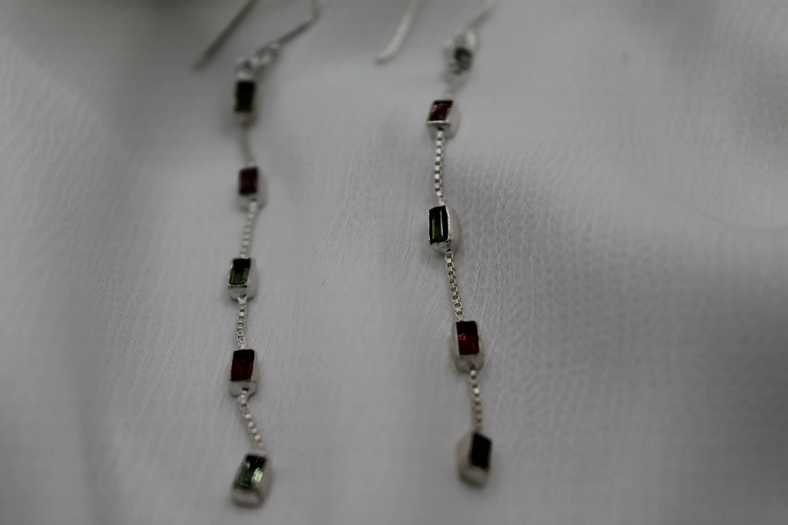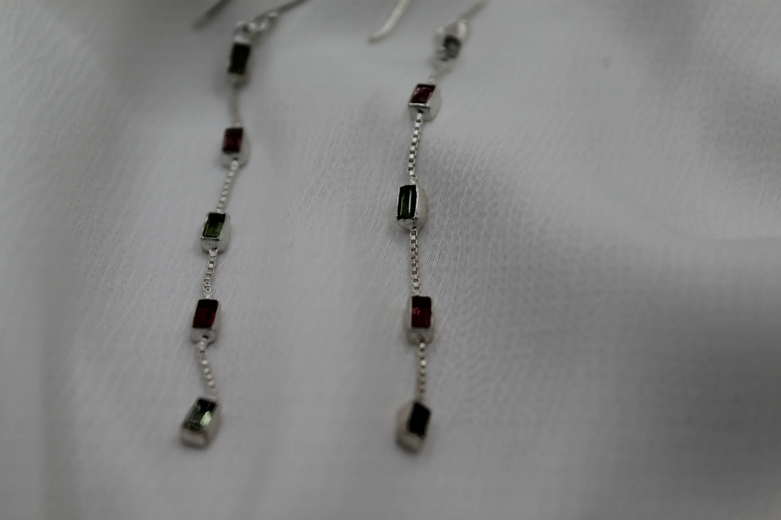 עגילים מכסף בשילוב אבני טורמלין הם התוספת המושלמת לכל הופעה שאת רוצה לחדש בהן. העגילים הללו לא רק שהן מתהדרות בעיצוב המתוחכם של כסף סטרלינג מבריק, אלא גם מצליחות לתפוס את העין עם אבני הטורמלין המיוחדות שמהן הן עשויות. האבנים מגיעות בגוונים מדהימים – ירוק, ורוד וזית, והן מתRenות את החדות והייחודיות שלהן במלוא הדרן. כל אבן היא ייחודית, עם דפוסים וטקסטורות שנעשו בטבע – כך שבאמת אף עגיל לא דומה לאחר. יש משהו קסום בעגילים הללו; הם יודעים להוסיף נגיעות של צבע ושמחה, ולעטוף אותך בתחושת יוקרה ועדינות בכל רגע שאת עונדת אותן. לא משנה אם את מתארגנת לאירוע חגיגי או מחפשת להפרות את הלוק היומיומי שלך, עגילים אלו ישאירו אותך זוהרת ובלתי נשכחת. בקיצור, אם יש משהו שצריך להיות בארון התכשיטים שלך, זה העגילים האלה!