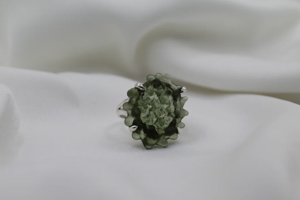 טבעת כסף בשילוב אבן מולדויט