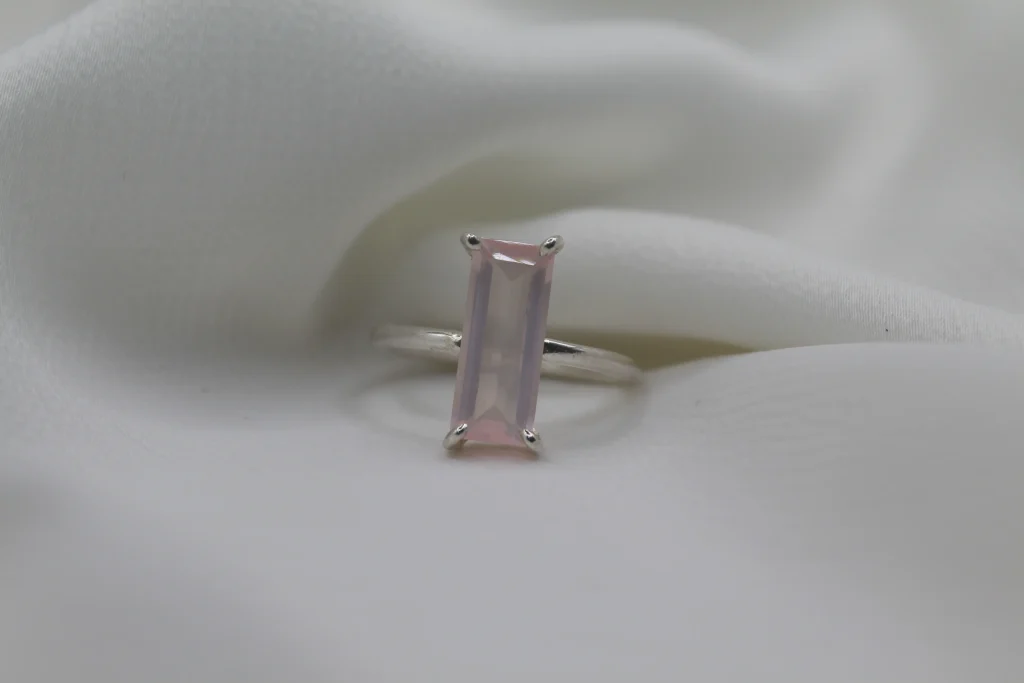טבעת כסף בשילוב אבן חן רוז קוורץ