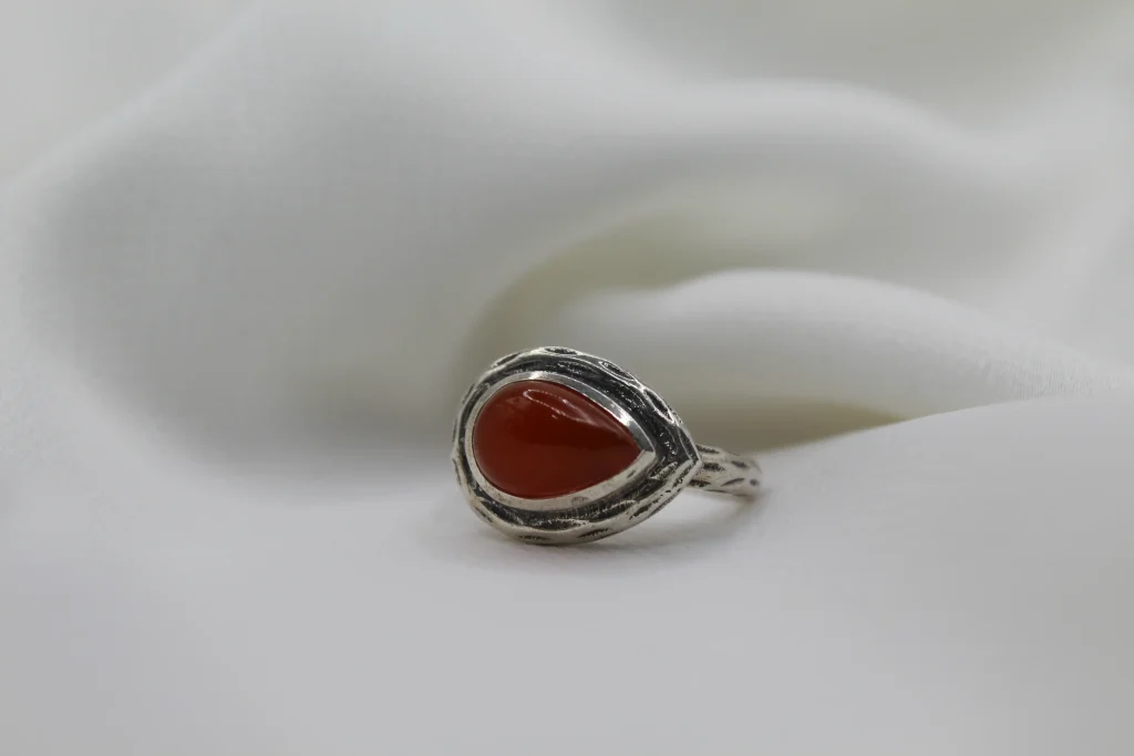 טבעת כסף בשילוב אבן חן קרנליאן