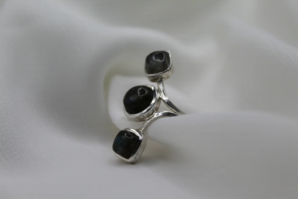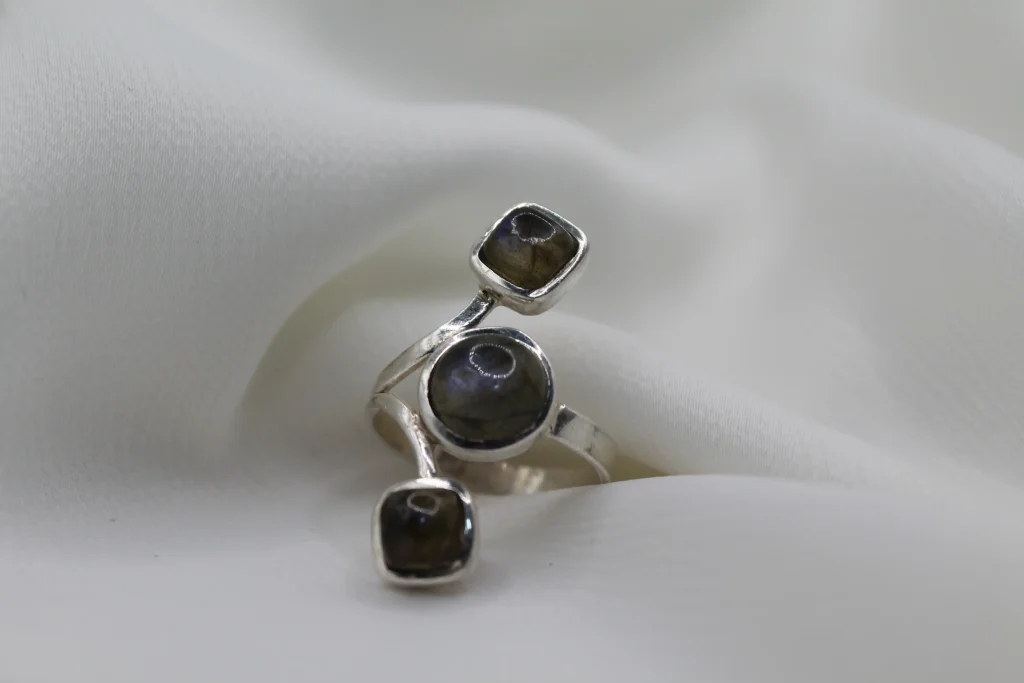 טבעת כסף בשילוב אבן חן לברדורייט